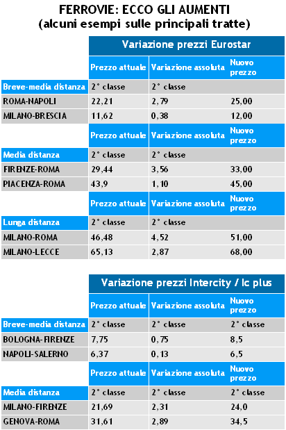 - Ritocchi per Eurostar, Intercity e A.V. Federconsumatori: «Da proporre solo dopo un miglioramento della qualità del servizio»