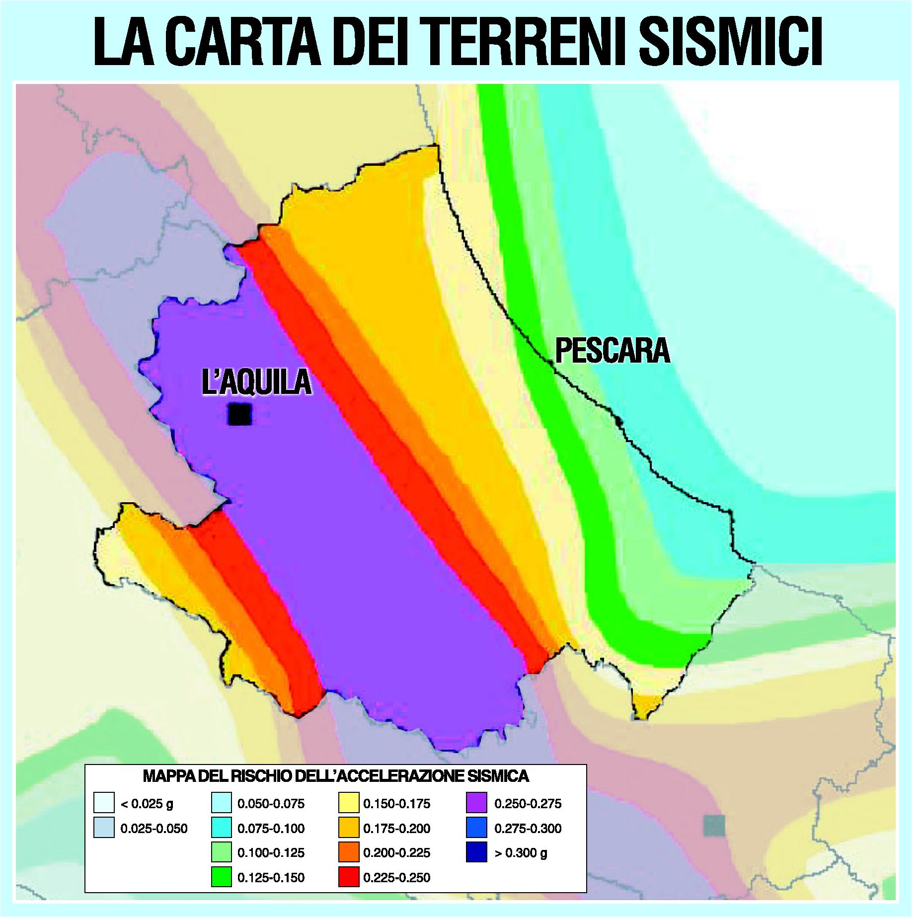 L'AQUILA. «L'intesità del sisma aquilano nel territorio abruzzese comporterebbe seri danni in tutti i centri storici e centri minori». A denunciarlo è l'ingegnere Nicola Sciarra ordinario di geologia applicata del dipartimento di geotecnologie dell'università di Chieti. Per Sciarra «manca la micro-zonizzazione dei terreni» e c'è poca attenzione, «alla qualità delle tecniche costruttive e dei materiali usati». Sciarra ha ultimato nel 2007 con altri tecnici coordinati dall'ingegner Pierluigi Caputi della Regione Abruzzo, la mappa di pericolosità sismica Mps04 (quella che pubblichiamo accanto) quale riferimento per posizionare i Comuni nelle 4 zone sismiche.