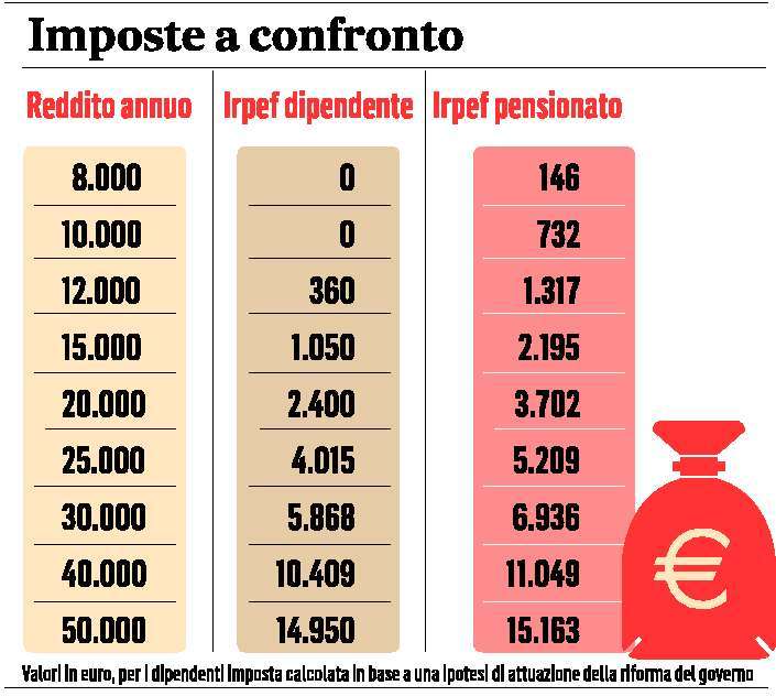 Irpef, effetto sgravi: per i dipendenti niente imposta fino a 10.500 euro. Si amplia la differenza di trattamento fiscale dei pensionati, la cui “no tax area” è a 7.500