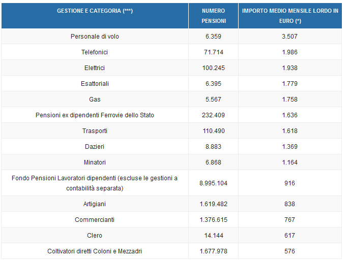 La spesa per le pensioni sale del 2,9%. Il 44,1% degli assegni sotto i mille euro. Agli ex dipendenti Alitalia e Telecom le pensioni più ricche d'Italia