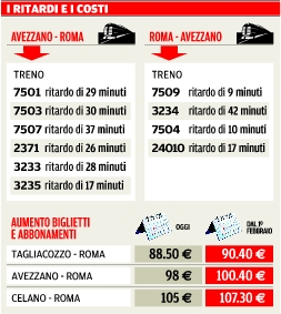 Treni Roma-Pescara aumentano i costi ma la linea va in tilt. Continuano i ritardi e scoppia la rabbia dei pendolari «L’assessore Morra non si fa rispettare da Trenitalia»