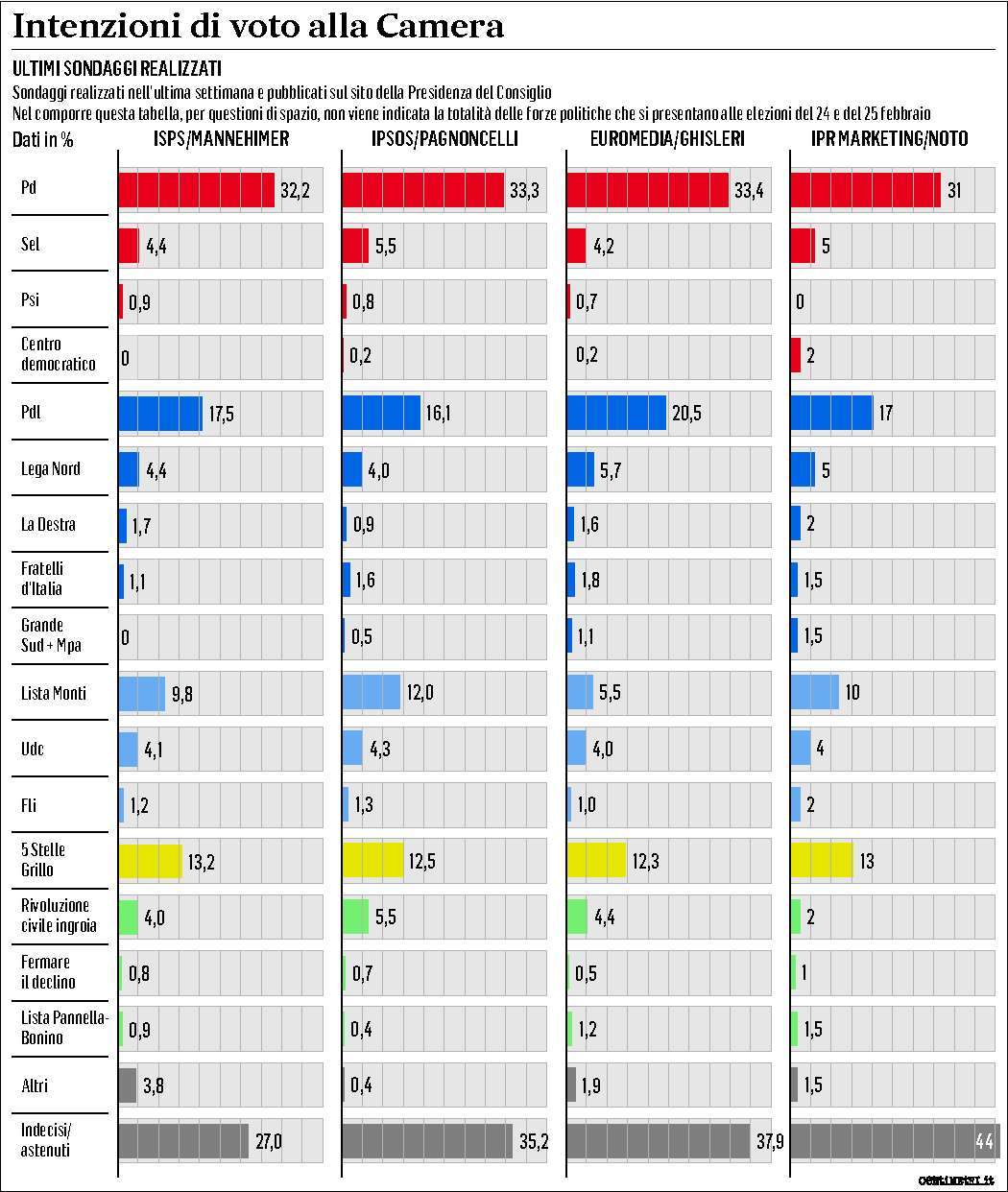 (Le intenzioni di voto alla Camera - Guarda)