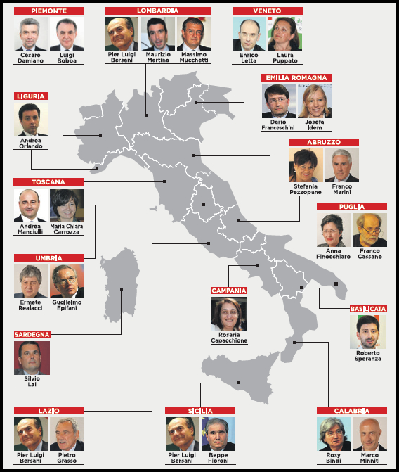 Liste Pd, Legnini capolista alla Camera Pezzopane al Senato. Il segretario Paolucci vola a Roma per l’ok di Bersani Sel, Melilla a Montecitorio, Suriani a Palazzo Madama