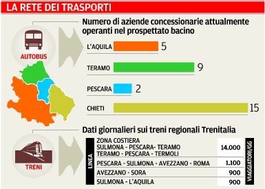 Ecco nel dettaglio i nuovi quattro bacini della mobilità regionale. L’Aquila, l’area sangro vastese, la zona litorale e quella montana