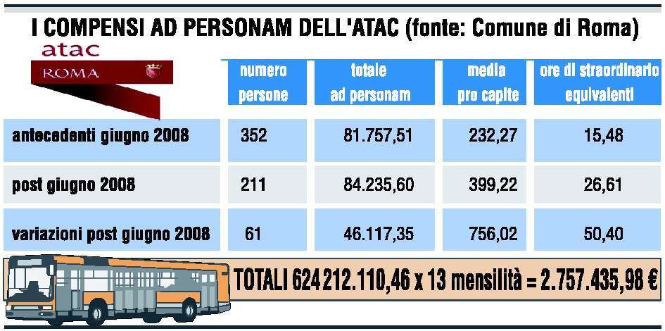Atac, ecco gli stipendi gonfiati. Compensi ad personam per 624 dipendenti: quasi tre milioni di extra l'anno. Nella lista solo quadri e impiegati ma nessun autista