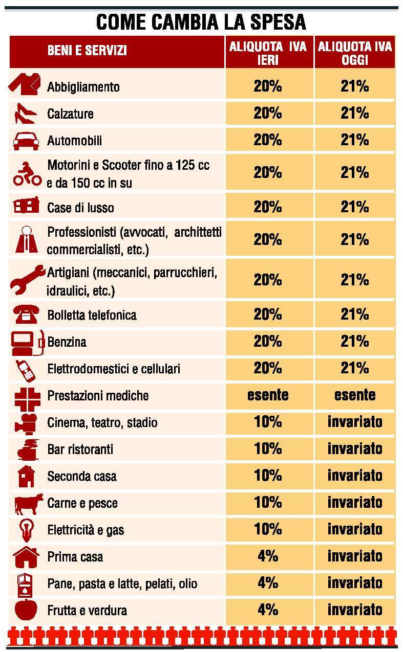 Scatta oggi l'aumento dell'Iva ecco cosa cambia