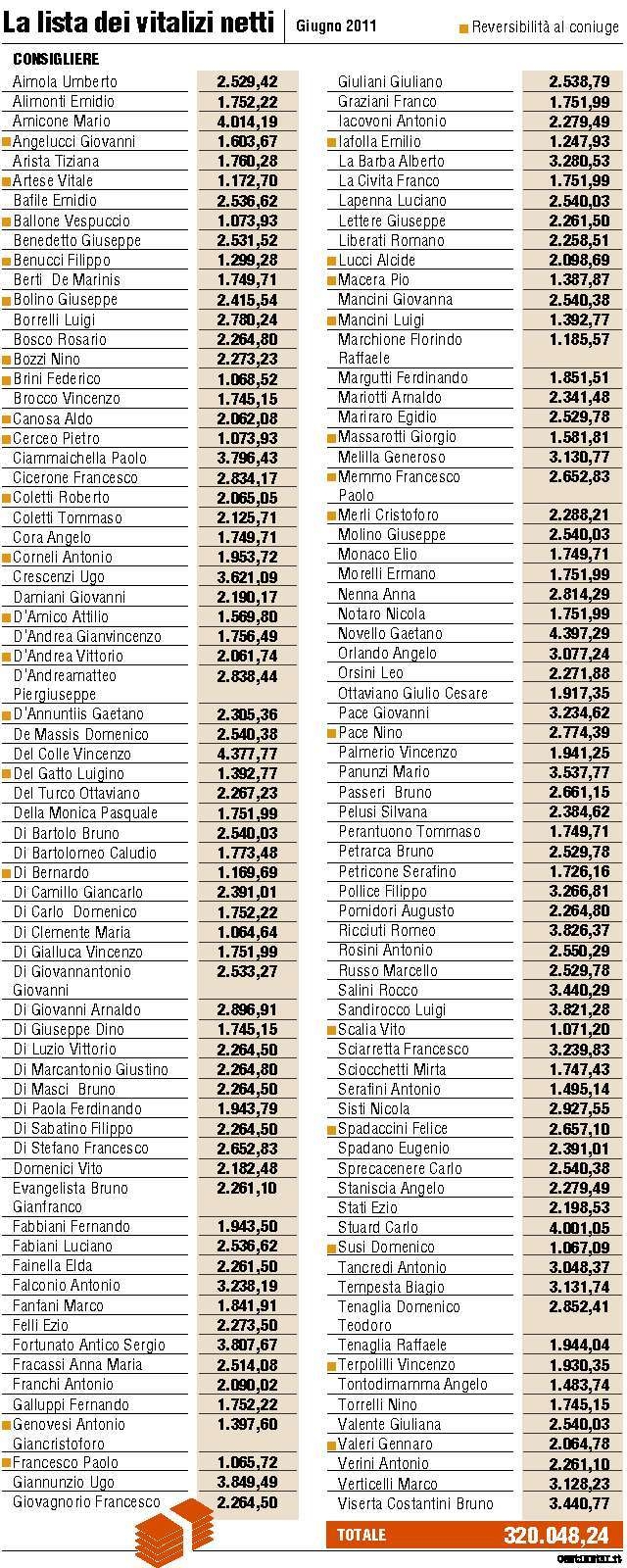 (Guarda la tabella con lista dei vitalizi)