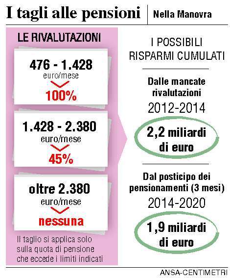 L'impatto sulle pensioni. Assegni più leggeri da 8 a 150 euro. Il costo della stretta: quattro miliardi e mezzo in due anni