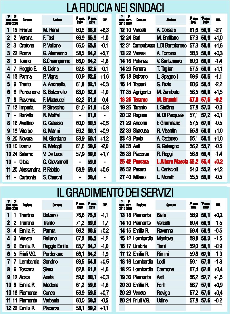 «Teramo e Pescara, sindaci graditi». Ricerca premia Brucchi e Mascia, nessuna città abruzzese fra le migliori