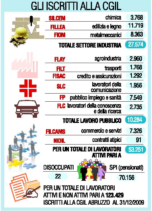 Gli iscritti alla Cgil Abruzzo(Guarda la tabella)
