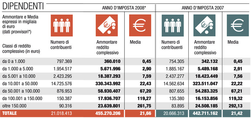 Tasse, sopra i 150 mila euro quasi tutti dipendenti e pensionati. Il grosso di artigiani e commercianti guadagna circa 18mila euro -